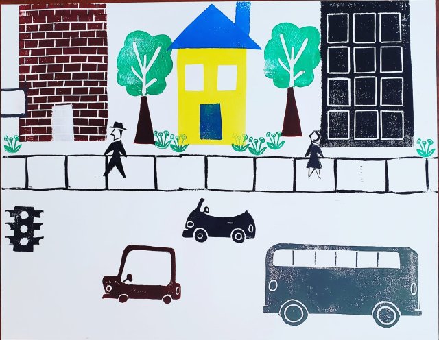 I specialize in carving rubber stamps to create my artwork. I carve my own rubber stamps and (sometimes) add digital elements to create unique artwork. There are more examples and products for sale at onestargone.com.